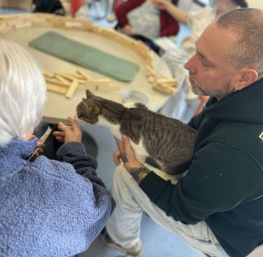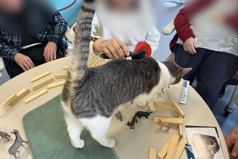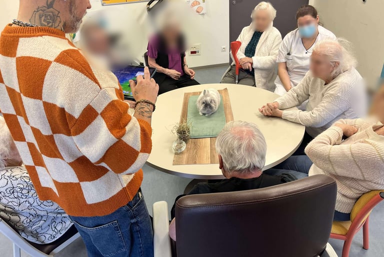 Chaque animal du Moustache Club participe aux séances avec sa personnalité, son calme et sa manière d’entrer en lien. Ils sont tous sociables, habitués au contact et choisis pour leur douceur. Ils accompagnent les participants sans brusquer, chacun à leur rythme.