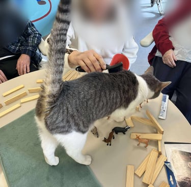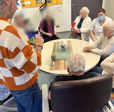 Le Moustache Club est au cœur de mes séances. Chaque animal apporte une présence différente, une douceur particulière et une manière unique d’entrer en lien. Leur calme, leur sociabilité et leur écoute créent un cadre rassurant où chacun peut avancer à son rythme.