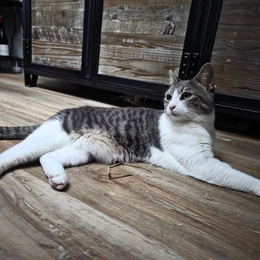 Il a un tempérament tranquille, avec une touche de malice. Il adore jouer, surtout à la baballe, presque comme un petit chien. C’est aussi un chat très bavard : il répond quand on lui parle et il a son propre “langage” pour saluer, réclamer ou réagir.